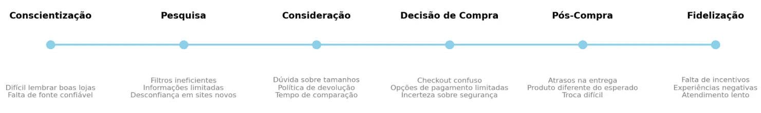 Os consumidores apresentam receio de receber produtos errados ou de baixa qualidade e muitas vezes se frustram com sites que possuem processos de compra complexos e demorados. Além disso, problemas no checkout e a falta de clareza sobre os prazos de entrega geram insegurança e reduzem a confiança na experiência de compra online.