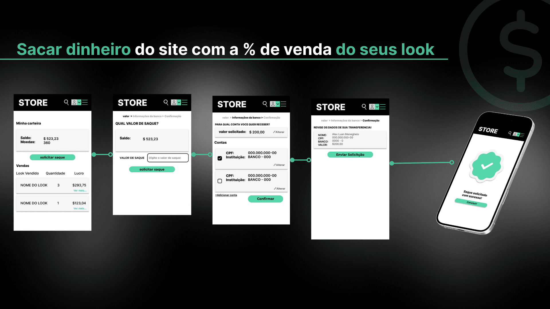 Sacar dinheiro do site, a lógica segue o padrão de aplicativos financeiros: acessar a carteira, escolher o valor, selecionar o banco e confirmar os dados. Essa clareza transmite confiança e segurança, fundamentais quando se trata de movimentação financeira, além de reforçar a motivação do usuário — quanto mais simples for sacar, maior o incentivo para criar e vender mais looks.