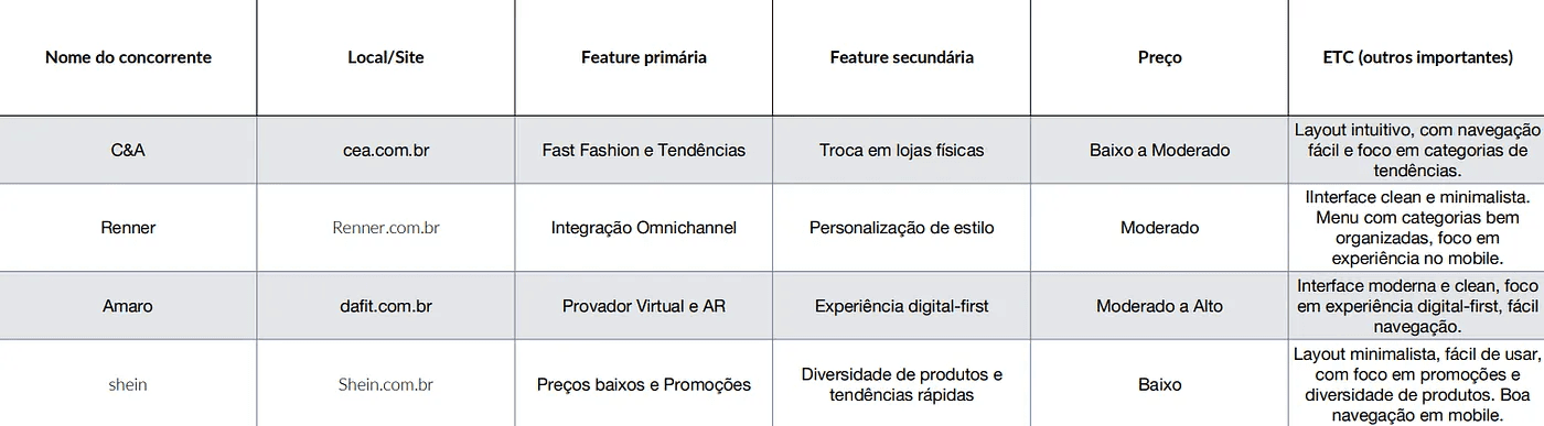 - Variedade de produtos e design moderno.Principais dores e frustrações: